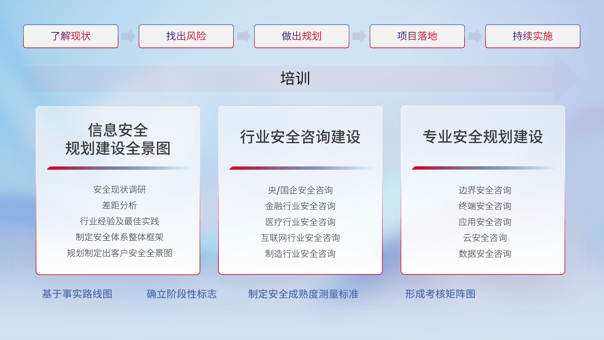 梳理客户信息安全现状调研、、差距分析结果,,,结合行业先进经验及最佳实践,,制订客户的信息安全管控体系总结架构,,,,最终形成一个完整的客户信息安全规划与建设的全景图。。。