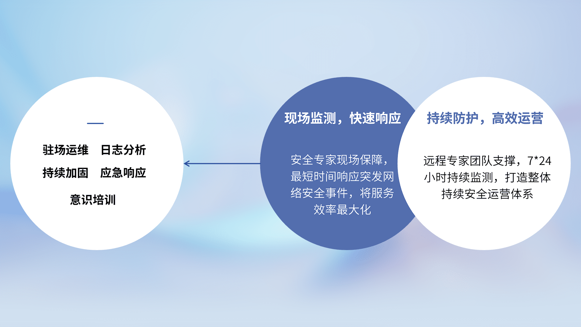 针对客户行业特性,,,,提供专属的一站式安全管理服务,,,,帮助客户全面感知网络空间威胁,,,通过安全专家的线上、、、线下防护支持,,,,实现风险闭环,,,将安全保障常态化,,,,为客户打造常态化安全运维运营服务。。
